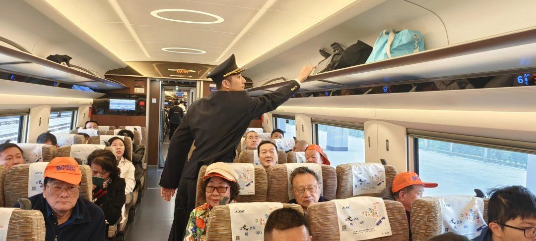 与此同时,在汕尾开往深圳北站的高铁上,张欣的丈夫袁晓烽正在巡视车厢,一位站在车门口彷徨无措的白发老人吸引了他的注意。“阿姨,有什么需要帮忙的吗?”袁晓烽上前询问,10年的值乘经验让这位列车长心细如发。