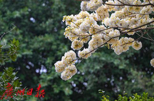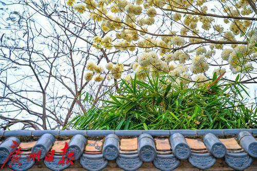 广州余荫山房白花风铃木惊艳绽放