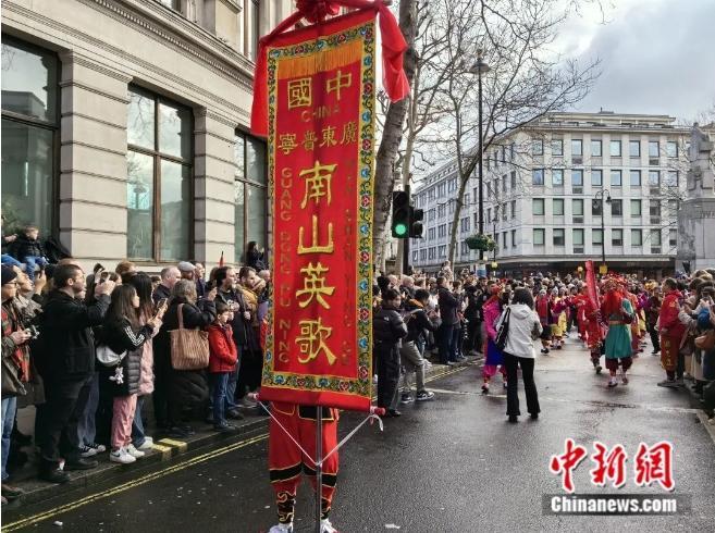 图为国家级非遗普宁英歌在英国伦敦的“炸街”表演。普宁市委宣传部供图