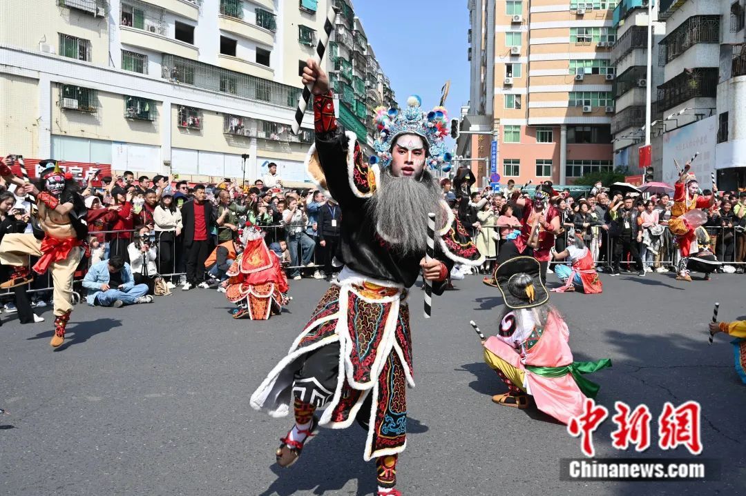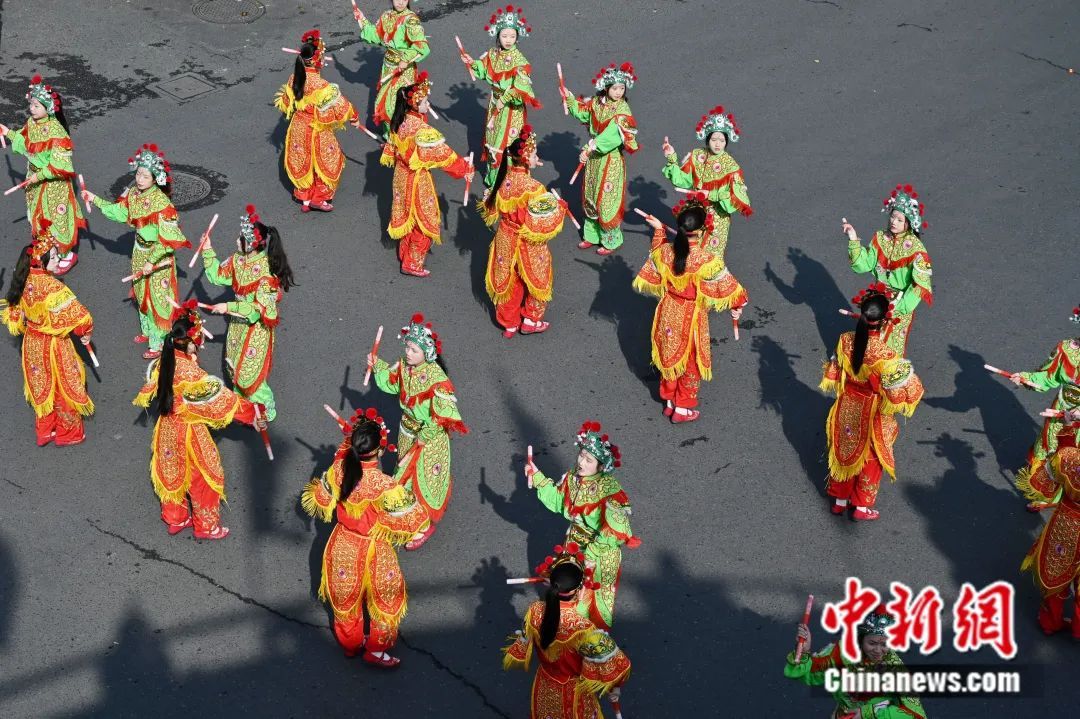 2月14日,“中华英歌·舞动汕头”2024年春节英歌舞展演巡游活动在广东省汕头市潮阳区举行。 陈楚红 摄