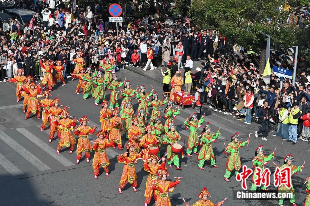 2月11日,“中华战舞·普宁英歌”2024年春节英歌舞巡游活动在普宁市举行。张思杰 摄