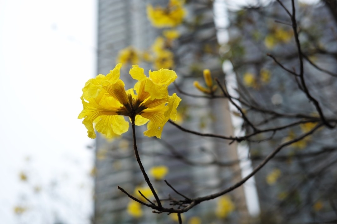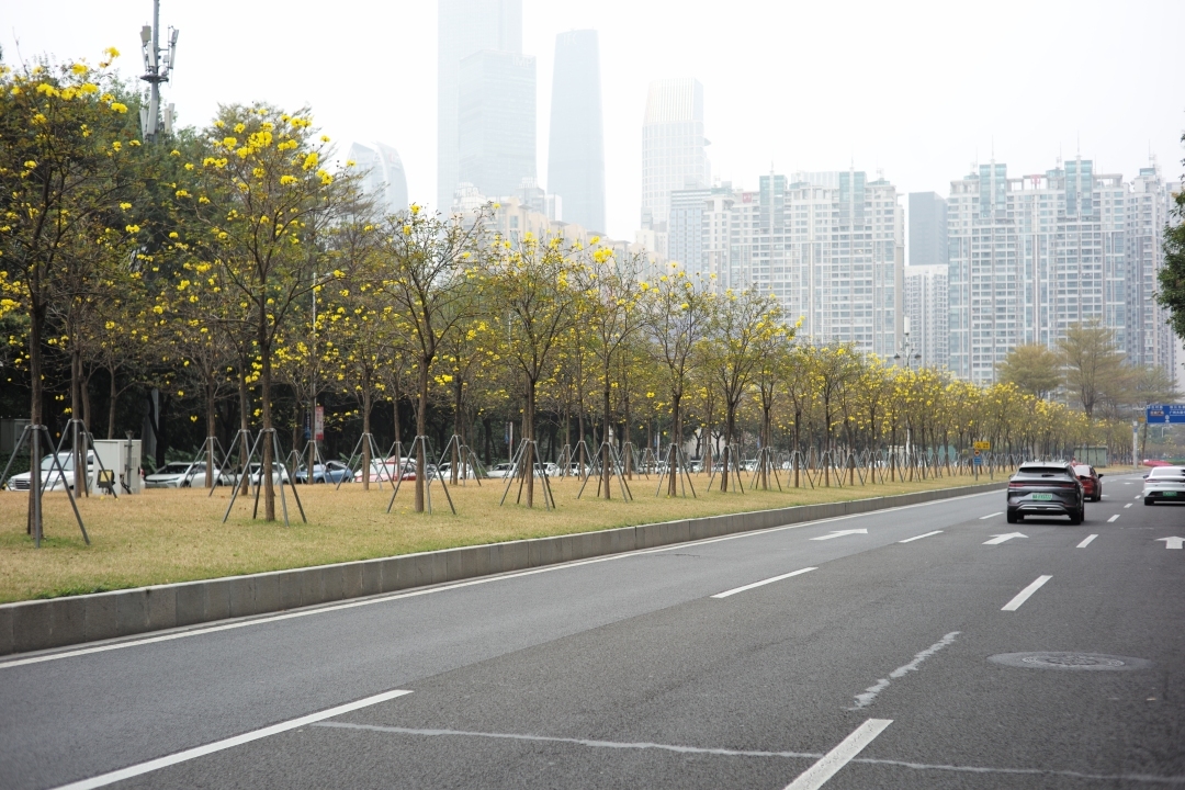 记者从天河区绿化管理中心获悉,广州珠江公园北门、金穗路有黄花风铃木574株,通常是在春天的3月份到4月份之间进行开放花朵。以先开花后长叶为主,通常只能维持10~15天。它开放的花朵形状就像是一个漏斗一样,花朵的边缘稍微有些打皱。并且花朵的颜色呈鲜艳的黄色状,整体效果美观。