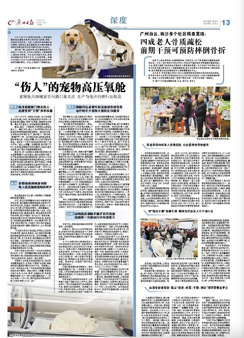 近日,在江南西的一家宠物医院内,宠物高压氧舱在使用过程中发生爆炸导致一名顾客受伤一事,引发大众关注。2月26日,《广州日报》“深度”版曾就该事件中的高压氧舱相关安全问题进行深度调查报道,发现行业内,宠物高压氧舱在使用过程中存在诸多操作不规范的情况。