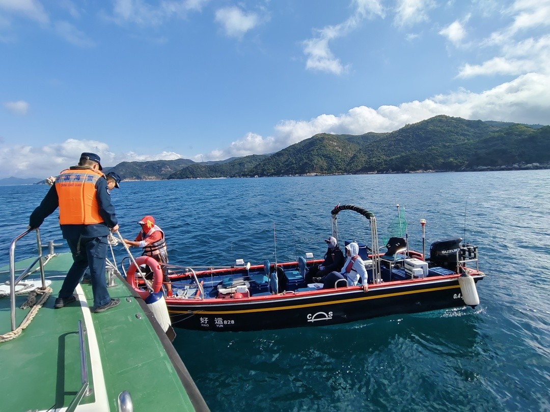 记者2月28日从广东海警局获悉,近日,深圳海警局大鹏工作站摩托艇在大鹏黑岩角附近海域日常执法巡逻过程中,成功救助一艘失去动力交通艇。