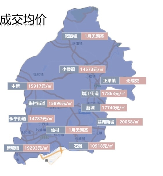 2024年1月增城各板块成交均价。(数据来源:克而瑞)