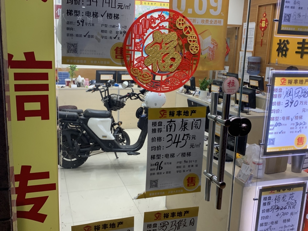 记者还发现,在海珠区宝岗大道南北广场首层一家地产公司办公室内停放了3至4辆电动自行车,办公室大门被锁上。办公室内摆放有电脑、桌椅等设备。