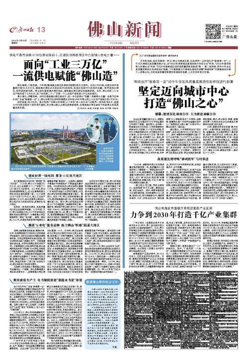 佛山是传统的工业大市,跟其他的制造业城市一样,佛山正面临新旧动能转换不足、产业转型升级乏力等突出问题,发展新质生产力,构建具有国际竞争力的现代产业体系,是佛山“制造业当家”的必由之路。电力是制造业高质量发展的前提,佛山供电局聚焦佛山产业发展需求,以全国标杆的保供电服务能力,为佛山制造再出发打下坚实基础。