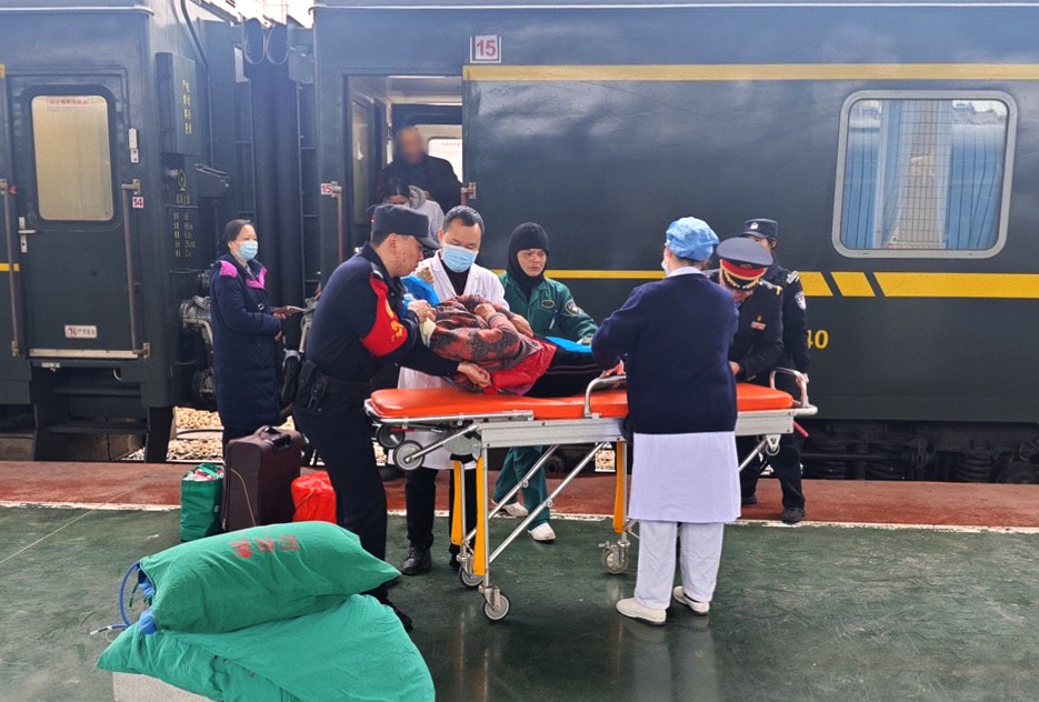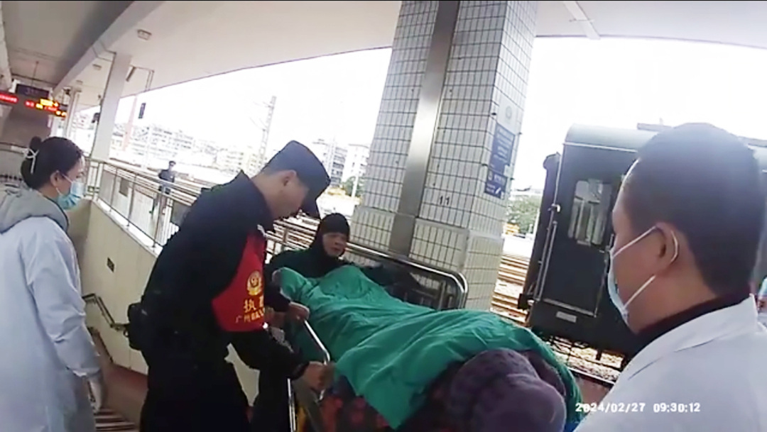 记者2月29日从广州铁路警方获悉,近日,一老年旅客在乘坐列车时突发疾病,陷入昏迷。危急时刻,列车临时停车,铁路工作人员和民警紧急开辟一条“生命通道”,为发病老人赢取宝贵的抢救时间。最终,因救治及时,老人被送至医院抢救后转危为安。