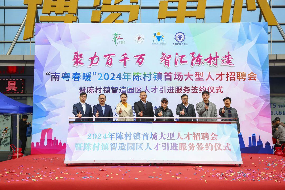 3月2日,由佛山市顺德区陈村镇公共服务办公室主办的“南粤春暖”2024年首场大型人才招聘会暨陈村镇智造园区人才引进服务签约仪式,在当地制造业企业集聚区域顺联国际机械城博览中心举行。