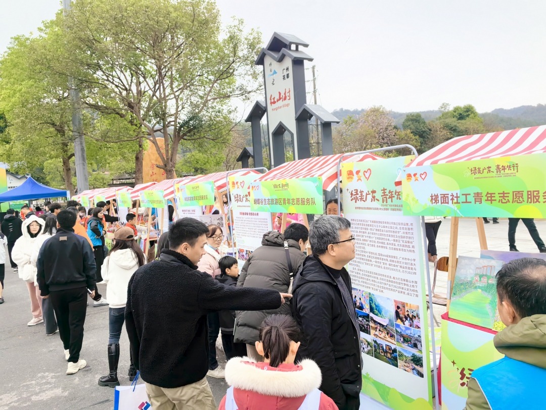 活动现场,绿美志愿服务集市摊位吸引了众多游客的驻足。游客们在参加爱绿护绿游戏、净水环保和生物多样性知识科普等摊位活动,了解当地精品生态游项目的同时,也对绿美广东生态建设有了进一步的了解。