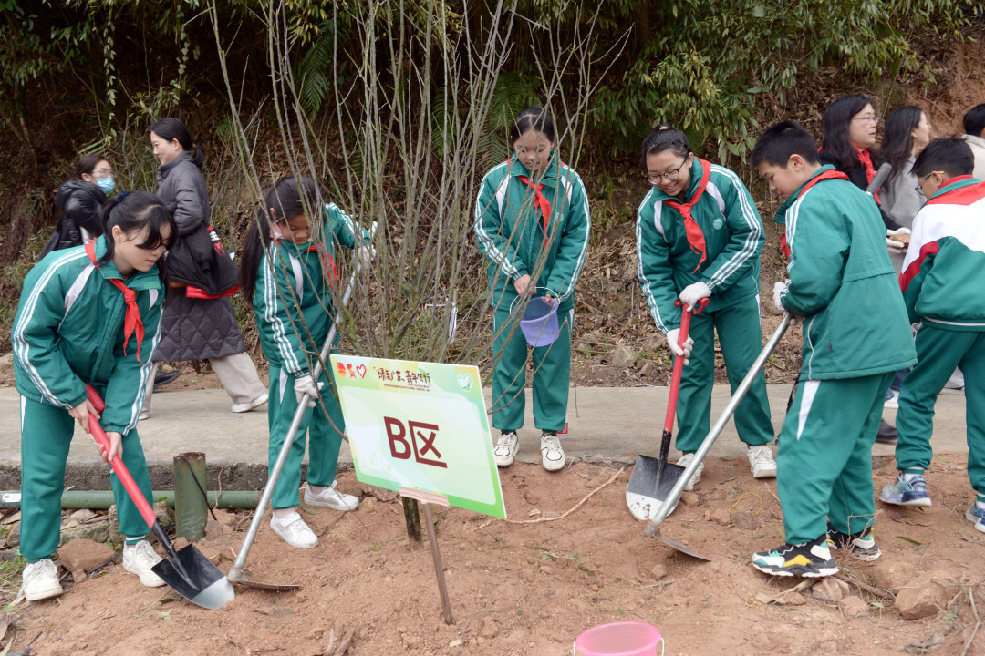 青年共同种下200株红梅树,6支绿美志愿服务队成立