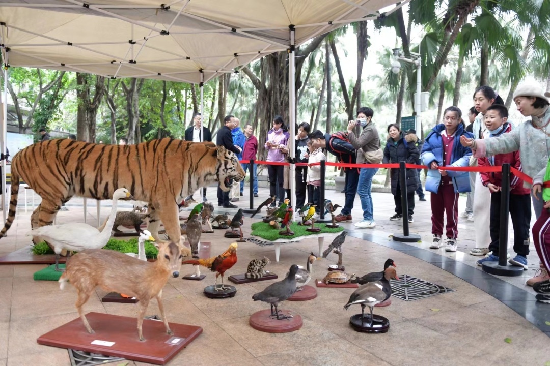 据介绍,其中一部分标本是新近制作完成的,这次是首次与公众见面。活动还设有广州市动植物图片展及保护知识展览,包括在广州市拍摄的鸟类图片展,展示广州市本土动植物资源,宣传最新法规政策。此外,广州动物园开展野生动植物“空天地”一体化智慧监测系统讲座,细致展现数字化智慧系统在广州市野生动植物保护方面的作用。