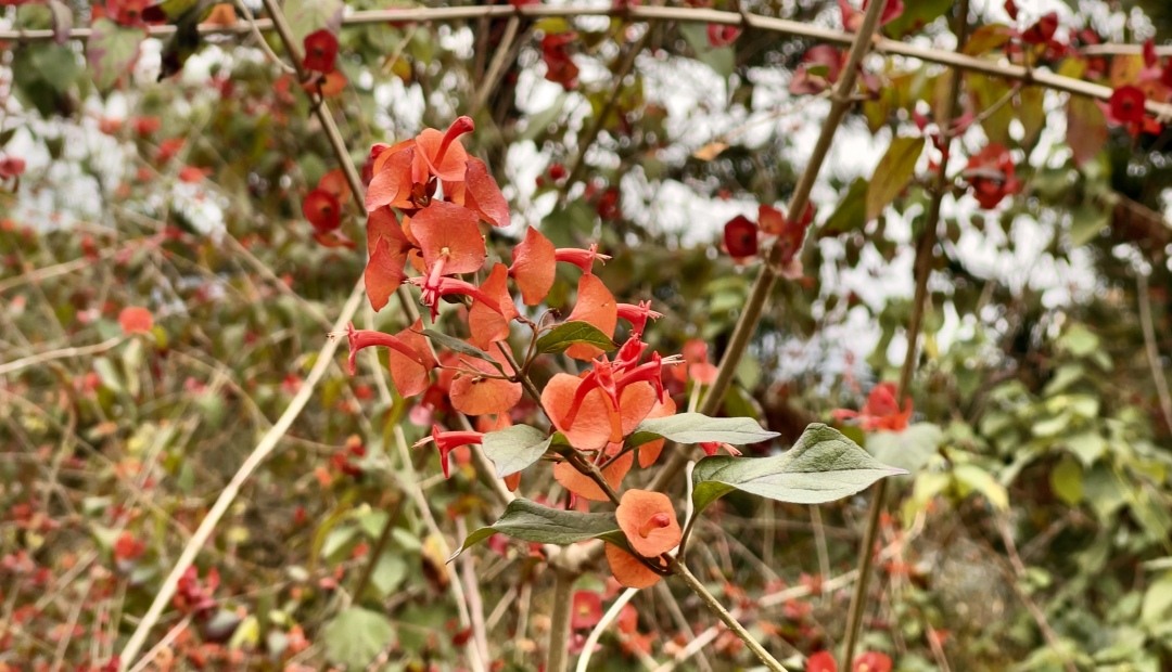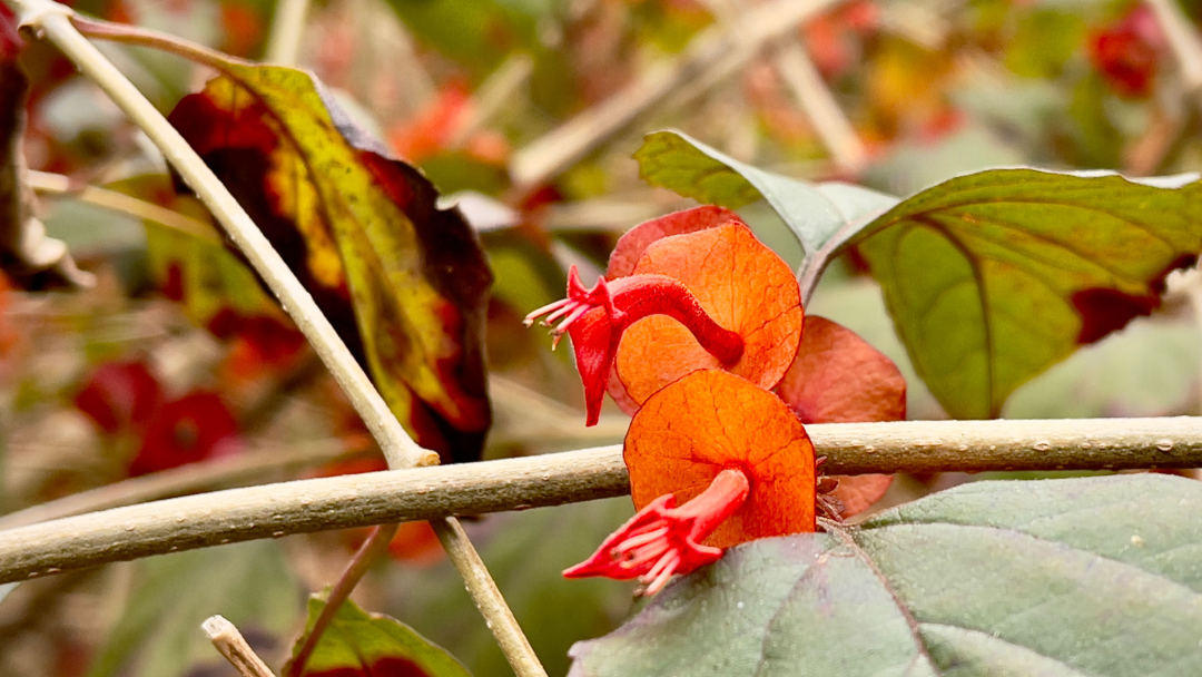 每年腊月,冬红都是寒冬里当之无愧的焦点植物。作为唇形科冬红属唯一的物种,看似不起眼的冬红能高达3至7米。圆圆的小可爱“圈粉无数”,不仅为冬日增添暖意,也为人们带来了喜心悦目的观赏价值,绚丽的红色花朵能从冬天一直开到春天,因此在园林绿化中经常能看到。花朵虽然娇小却不乏精致,在发育的早期阶段,短短的花冠筒尚未打开,看上去就像是铃铛的小摆锤。开花之后,其花冠呈筒状弯曲,花丝和柱头伸出花冠,像极了长在植物上的火红的虾米。