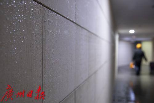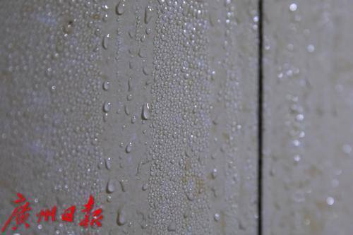 “回南天”来了,墙壁上挂满了水珠。(摄影/记者 苏俊杰 )