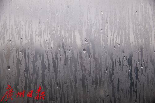 窗户玻璃上夹杂着水雾气和雨滴。(摄影/记者 苏俊杰 )