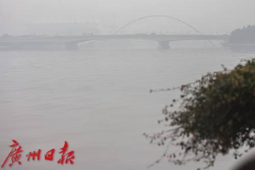雨雾中的海珠桥和解放桥一带。(摄影/记者 苏俊杰 )