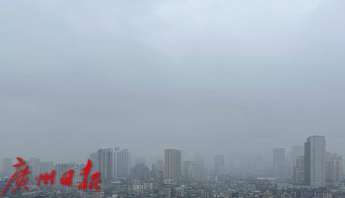3月4日,广州城区,天空下着毛毛细雨,随着能见度降低,远处的楼宇迷失在雨雾之中。(摄影/记者廖雪明 )