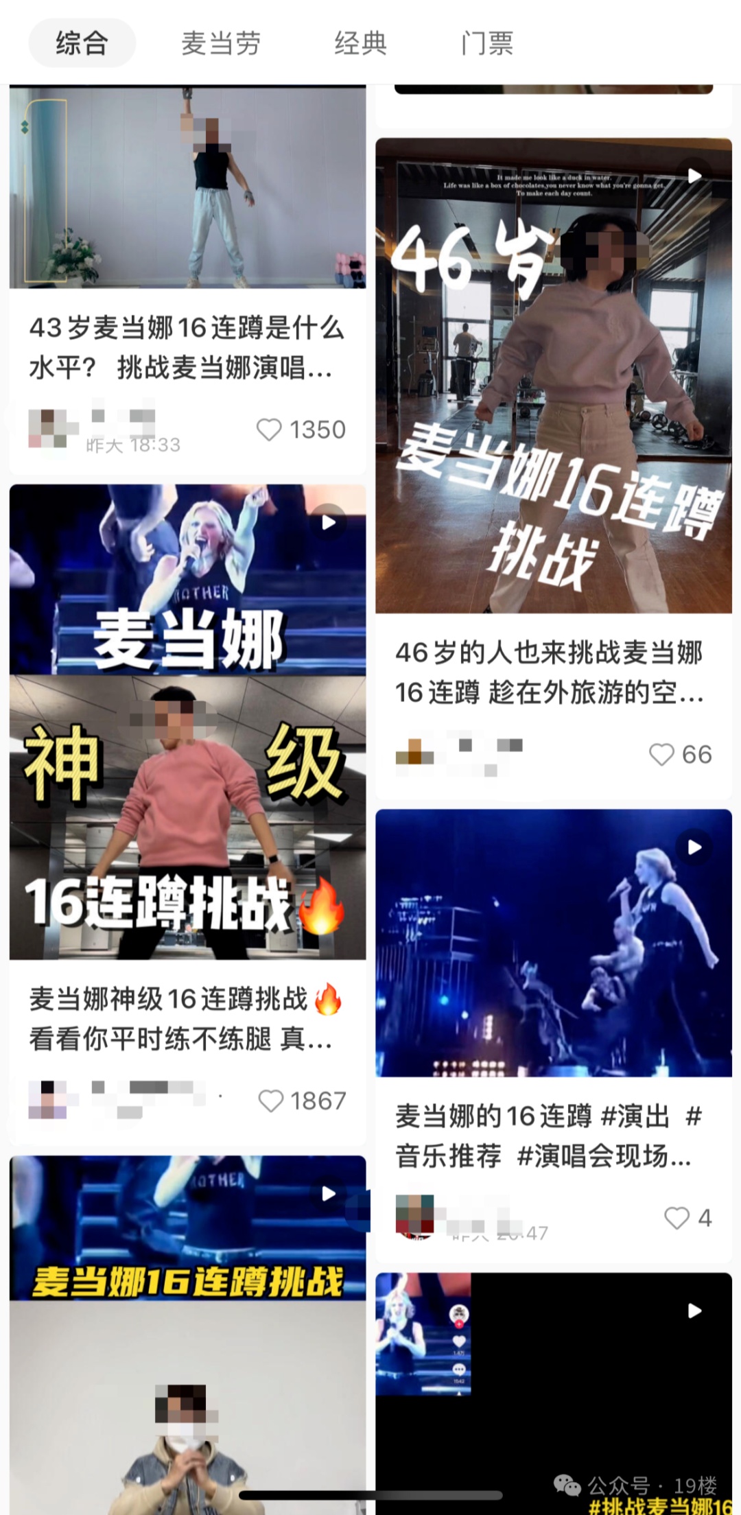 #挑战麦当娜16个深蹲#也迅速成为热榜,成为社交媒体上的网红动作。