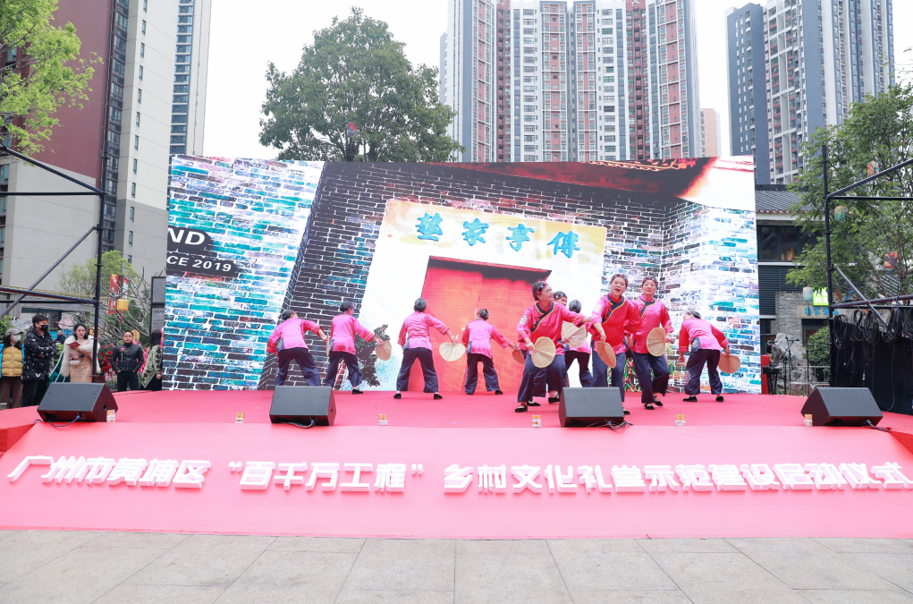 3月1日,黄埔区“百千万工程”乡村文化礼堂示范建设启动活动在幸福里举行。活动现场,黄埔老年开放大学文冲街分校学员、文冲社区居民陆炜荷和姐妹们表演舞蹈《阿婆的幸福生活》。