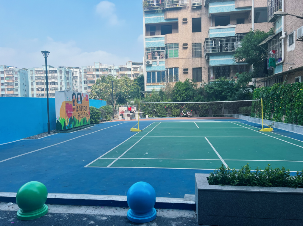 在提升莲港花园环境的过程中,石楼镇从居民实际需求出发,着力提升居民生活品质。此前,小区没有健身和休憩场地,也没有健身康体器材。经过容貌提升,石楼社区以石楼本地的海洋和渔业生态为特色,在小区内打造了5个口袋公园、1个海洋主题公园、1个羽毛球场和1个综合篮球场。