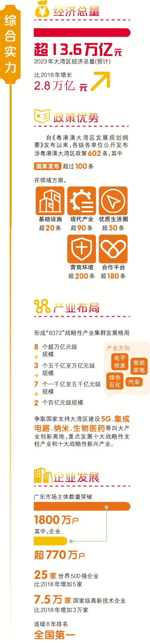 ·深入实施“湾区通”工程,粤港澳三地规则衔接机制对接已基本覆盖医疗、教育、就业、政务等经济社会发展各领域各方面。