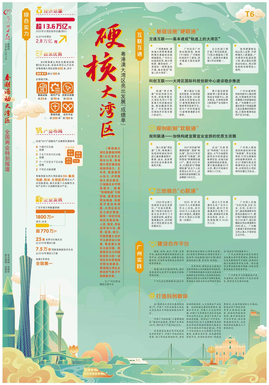 ·广州共建国际科技创新中心稳步推进,向港澳有序开放在穗重大科研基础设施,广州超算中心打通全国首个将超级算力直达香港的网络专线,已服务港澳地区用户近300家。