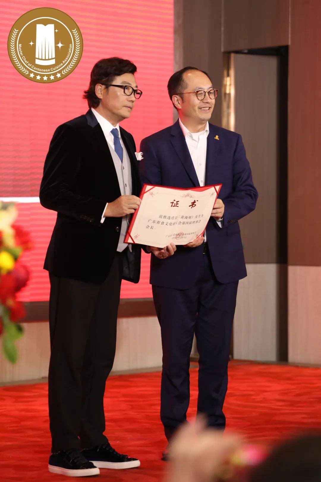 中国饭店协会副会长金勇(右)为庄臣颁发证书(左)