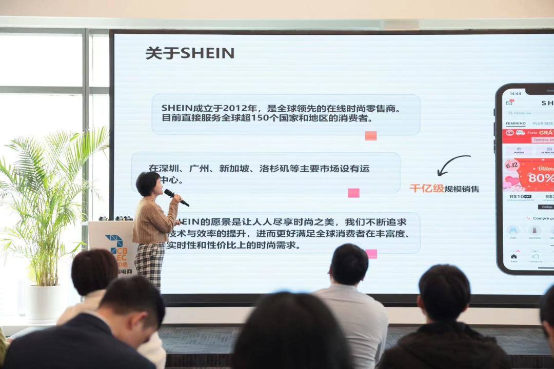当天,在全球跨境电商三中心会议室,希音高级招商经理Care Mo向参会企业介绍了该企业跨境电商业务开展情况。据悉,希音的跨境电商业务目前已覆盖全球150多个国家和地区,2023年,在自有品牌之外,还进一步迭代出了“自营品牌+平台”双引擎发展的独特模式,越来越多的产业带商家正在加入希音平台,企业在其不断扩展的产业生态系统中找到了新的发展机遇。