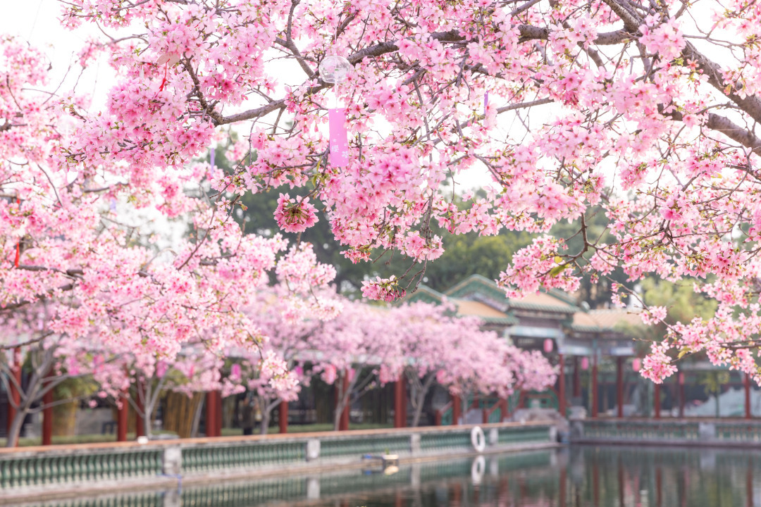 另外,3月8日起多个以花为主题,并结合国风汉服元素的节庆活动也即将推出,广州融创乐园启动汉服节,广州宝墨园于当日推出穿汉服搬家游园赏樱活动,一年一度的“汉风古韵樱花节”也将在周末开幕。3月9日,天适樱花悠乐园的花朝节上,还将举办汉服巡游、花神才艺表演,丰富游客体验。