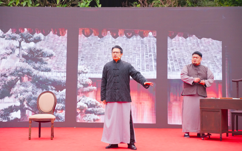 “革命至情能似此,已非吾子是吾师。”以陈复烈士革命事迹为原型的情景剧《哭子复》在当天进行首演,以革命烈士陈复牺牲后其父陈树人在极其悲愤的情境下写就的《哭子复》诗八首为主要内容,反映了陈复烈士为了革命理想而不惜献身的崇高精神。