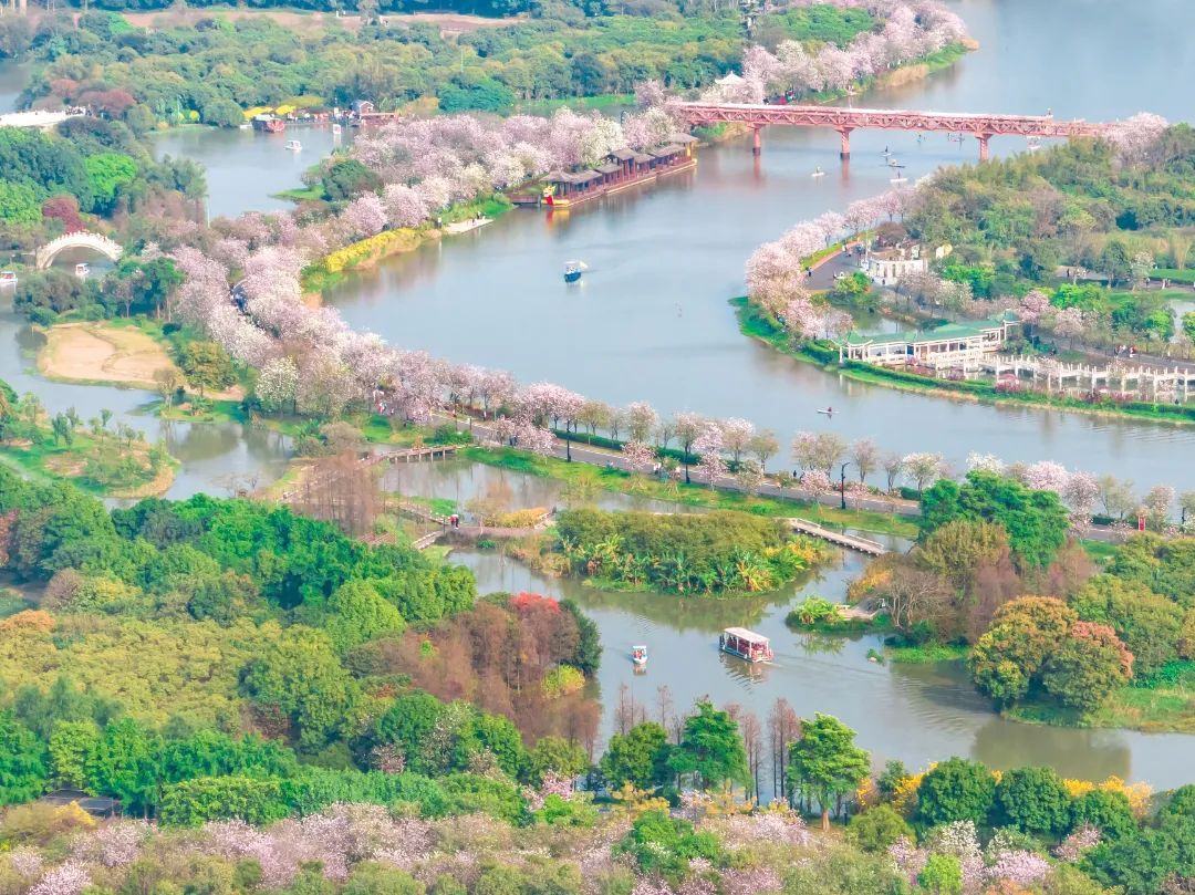 海珠是一座拥有丰厚红色文化历史底蕴的城央绿色生态岛。眼下,各色花卉花期已至,满城芬芳春色尽染。
