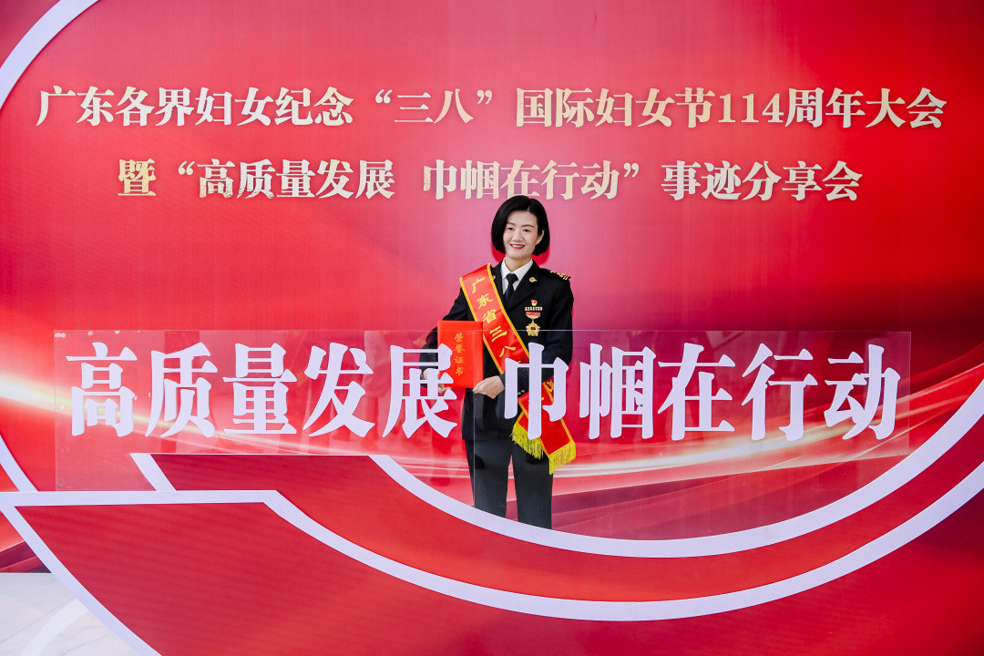 作为广州白云机场海关物流监控处场所监管科副科长,蔡岱莹始终牢记“人民海关为人民”,积极投身智慧海关建设和“智关强国”行动,推动物流保通保畅,为“智慧空港”建设贡献海关巾帼力量。她曾被多次授予个人嘉奖,先后获得广州海关“2019-2021年度优秀共产党员”和广州海关“三八红旗手”等称号。今年3月,她荣获广东省“三八红旗手”称号。