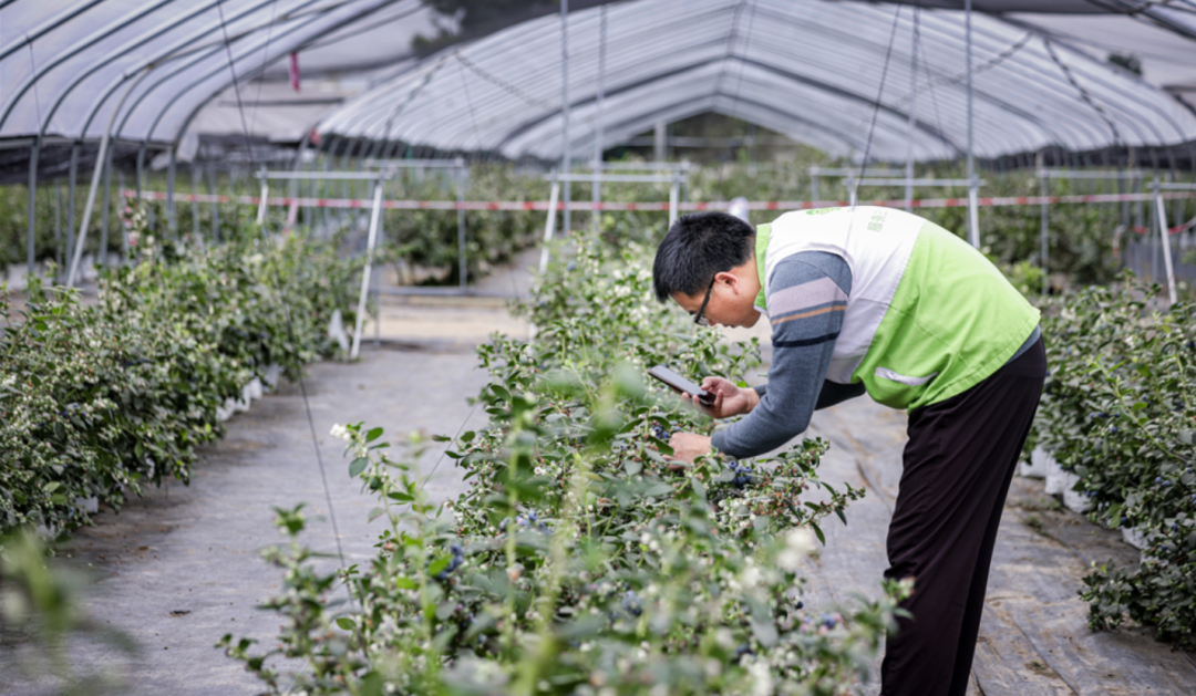 走进这家蓝莓采摘园,只见一颗颗呈扁圆状的蓝莓挂满枝头,形似蓝宝石。一口咬开,果皮薄脆,果汁清甜,果肉丰盈饱满,让人口齿生津,回味无穷。