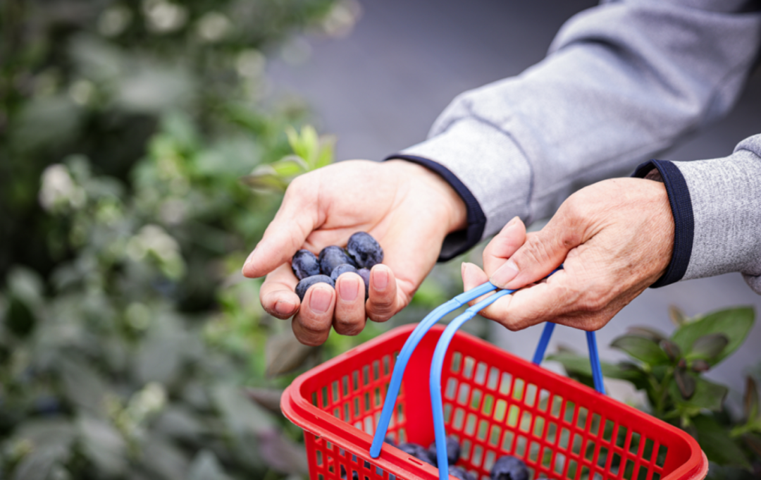 那么,如何才能采摘到成熟鲜甜的蓝莓呢?刘展鹏告诉记者,蓝莓需要适时采摘,通常蓝莓的果实已经具备品种风味、形态和特征,果实中的可溶性固形物的含量也达到品种要求,就可以采摘。蓝莓的生长期可以通过表皮颜色进行辨别,成熟前的蓝莓结青色的果实,慢慢变成粉红色、紫色,足够成熟时是黑色。采摘时用手指轻轻旋转蓝莓果实,成熟的蓝莓会自然脱落。