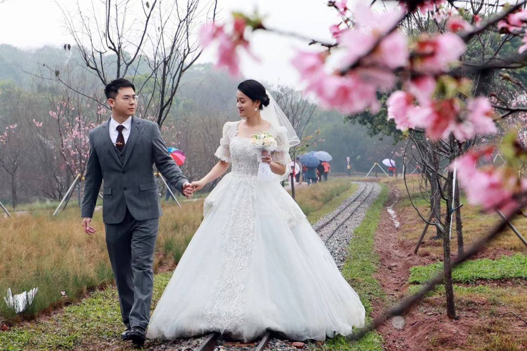 值得一提的是,开幕式当天同步举行了大岗镇首届集体婚礼,8对新人在漫天繁花及市民游客的共同见证下携手迈向人生新旅程,结发、执手等传统环节让人感受到传统婚俗文化魅力。婚礼现场还特别打造了“樱爱施善”慈善婚俗文化集市、公益绿植认捐、“樱缘而遇”浪漫互动打卡体验等活动区域,倡导婚俗新风。