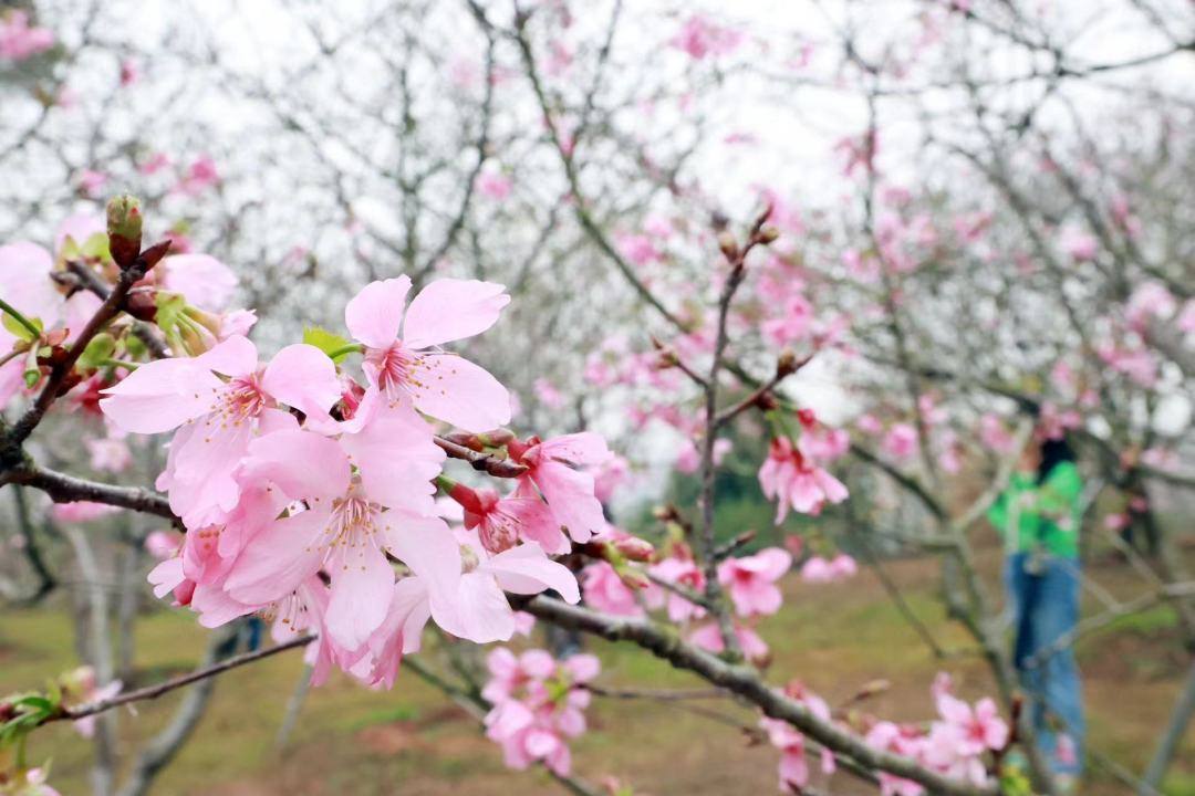 樱花园内粉色樱花绽放,随风摆动的花瓣散发出阵阵花香,令人心旷神怡。有几棵早早进入盛花期,成为樱花园内的“网红树”,游客争相拍照打卡留念。大岗镇有关负责人表示,十八罗汉山森林公园的樱花种植面积超过30亩,主要品种为广州樱,每年三月份进入开花期。受天气影响,预计樱花下周进入盛花期,盛花期将持续到本月中下旬。如果气温低,花期可以持续约半个月,如果气温高,花期将缩短。