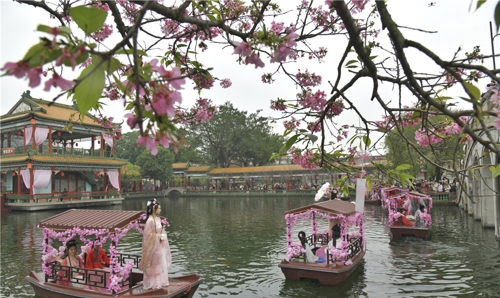 3月9日,由广东省农业农村厅、番禺区文化广电旅游体育局、番禺区番发集团有限公司、广州地区旅游景区协会、番禺区旅游协会指导,宝墨园主办的2024年宝墨园•南粤苑汉风古韵樱花节暨“樱缘群仙会”系列活动在宝墨园开幕。目前宝墨园内樱花成海,花期将持续到3月下旬,市民可到此开启浪漫缤纷赏樱之旅。