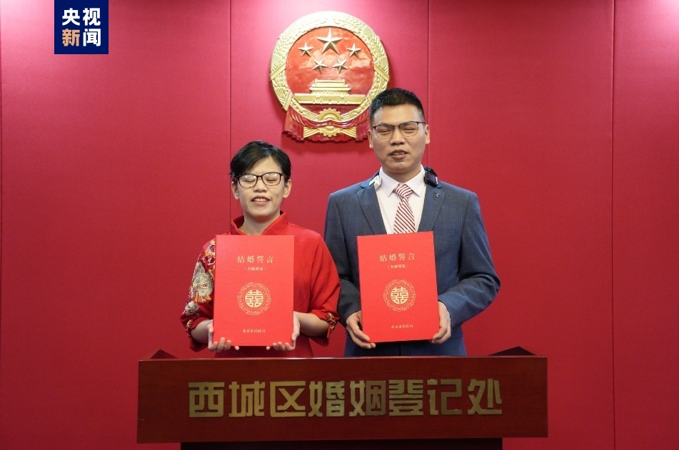3月12日,张女士和王先生携手走进北京市西城区民政局婚姻登记服务中心,全程无障碍办理了结婚登记手续。张女士为视力残疾一级,王先生为视力残疾二级,他们只能摸读盲文或者阅读大号文字。北京市西城区民政局婚姻登记服务中心得知两位新人的视力状况后,主动为两位新人设立绿色通道,并提供盲文版、大字版结婚登记告知单、结婚誓言。据悉,这是北京市西城区民政局婚姻登记服务中心第一次为视障人士提供盲文版、大字版无障碍格式结婚登记制式文件,也是全国首次为视障人士提供无障碍格式版结婚登记告知单、结婚誓言。