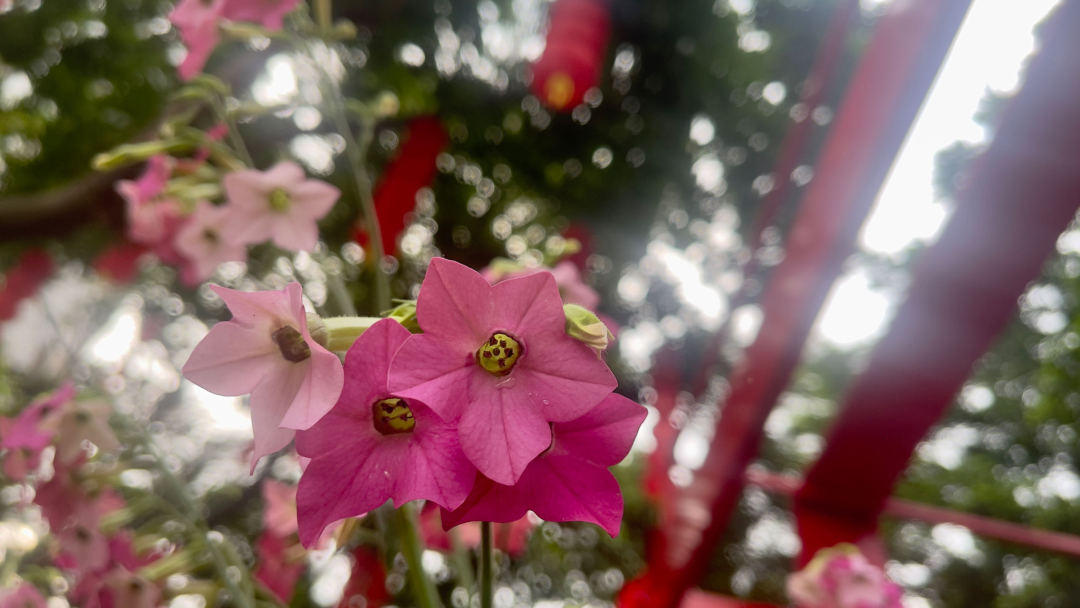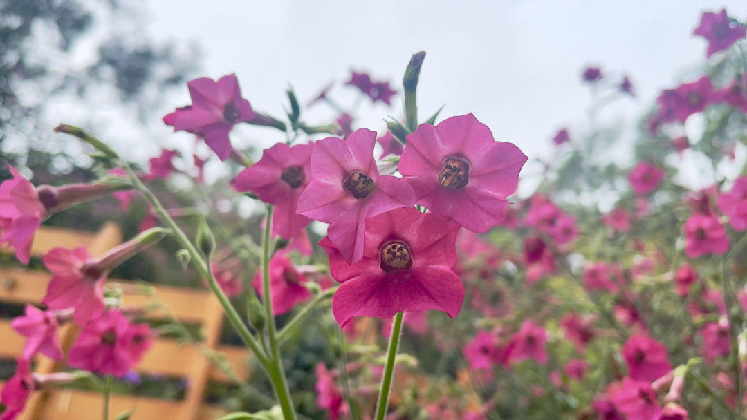 花烟草的“走红”绝对不是因为“家族”知名度高,而是凭借自身丰富多彩的花色,以及如同瀑布般的花量实力“出圈”,花量最盛的时候比叶子还要繁盛,一株就能开成一小面花墙。它的花朵多数是单瓣,花型似小风车,花瓣轻盈很容易随风摇曳,无论是红色、粉色还是白色,混杂在一起所形成的渐进色效果,最为引人关注。