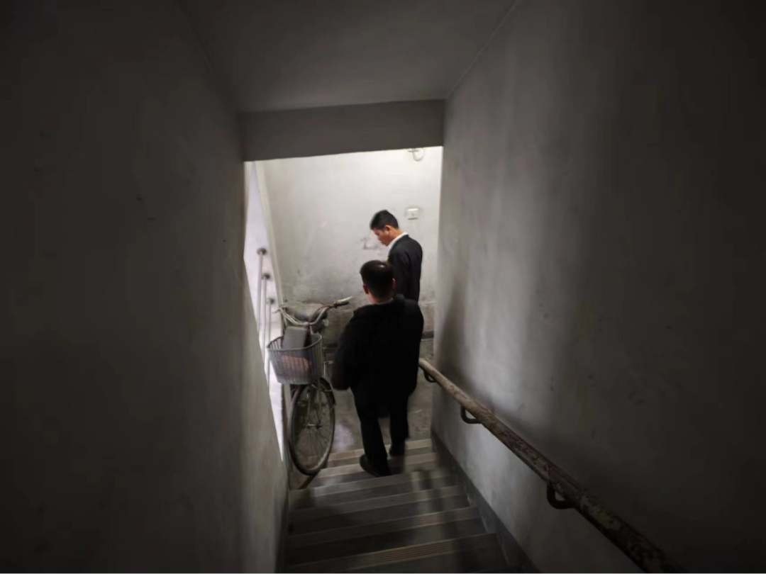 在越秀区太华坊28号住宅楼,消防监督员发现小区首层楼梯间的出入口都有电动自行车和单车停放。