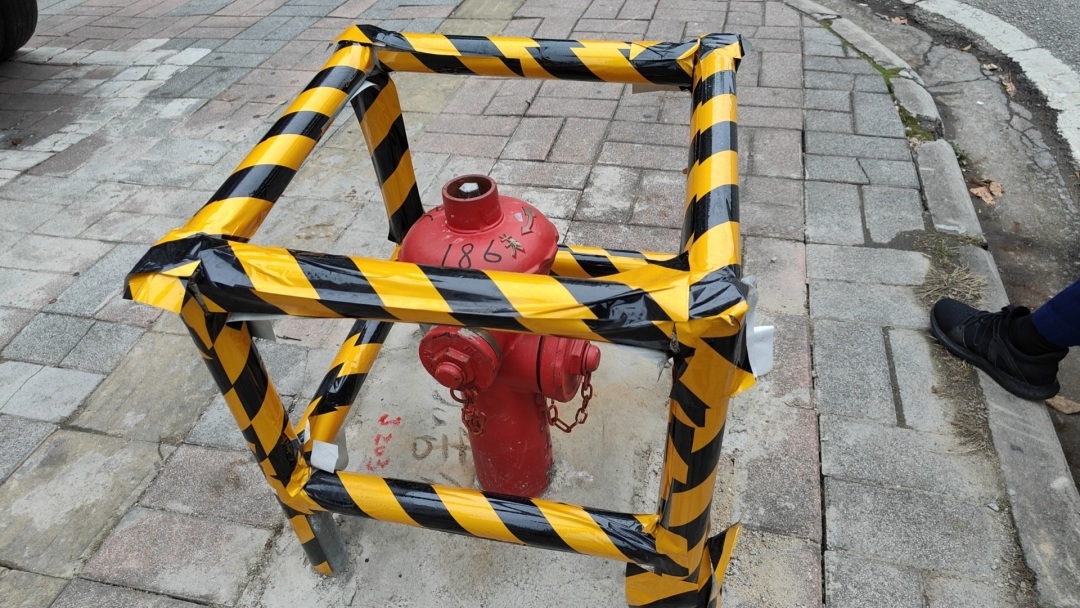检查过程中,消防监督员发现该小区的人行道上,一个室外消火栓竟被防撞栏围住。