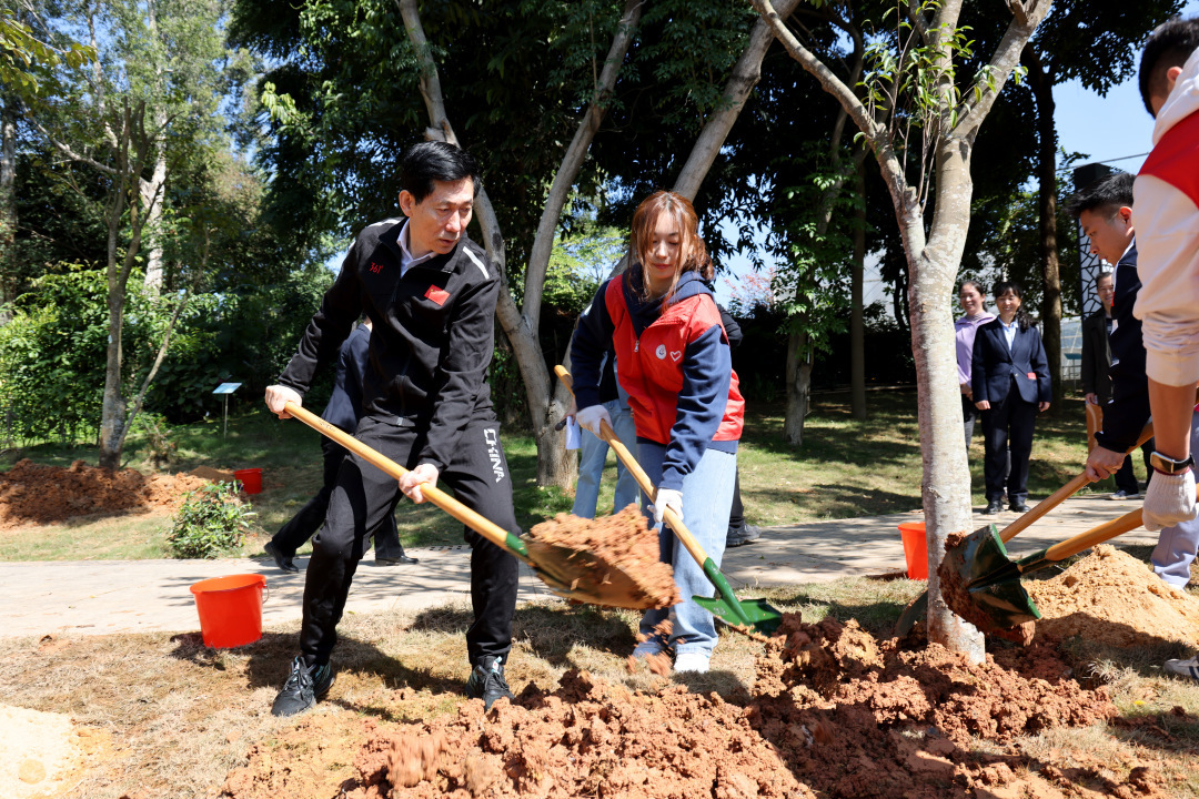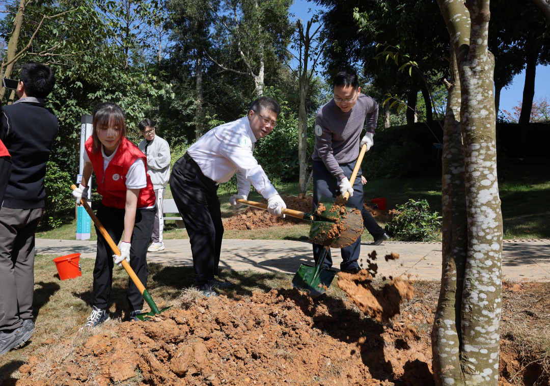 双向奔赴!3月12日是全国第46个植树节,广州中医药大学开展“绿美广东共参与,双百行动勇担当”植树节活动,校领导及师生代表在该校大学城校区药王山上共同种下20株沉香树。与此同时,该校师生志愿者也奔赴佛冈县石角镇里水村开展植树活动,和当地一同栽下49棵柳树树苗,共同助力“绿美广东”。