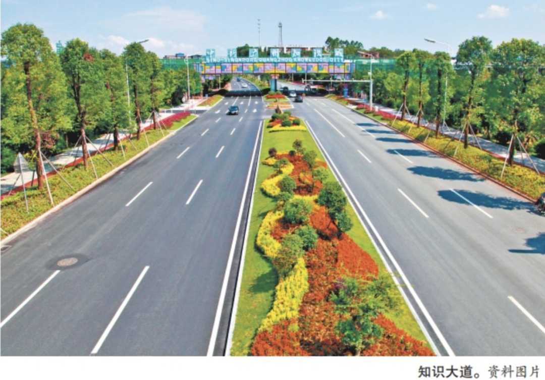 知识大道、知新路、知明路等三条主干道贯穿知识城南北“两街一镇”(九佛街、龙湖街、新龙镇),连接多个产业园区,是串联知识城的南北交通大动脉。