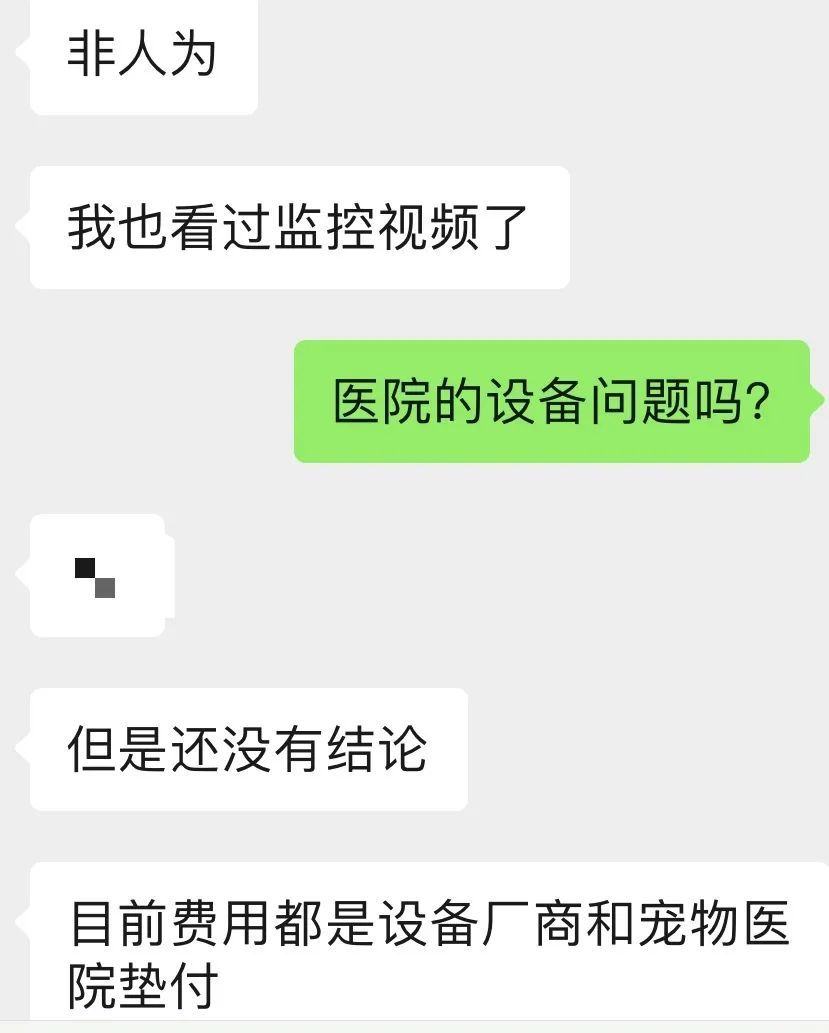 本报记者从家属方获悉,从3月初事发起,家属方一直在咨询国内外专家进行治疗,设备厂商与宠物医院亦参与垫付了全部医疗费用,但依然无法让当事人恢复自主呼吸。此外,家属方透露,目前他们也已看过事发当日监控,相关的事故调查也还在进行中,“目前还没有明确结论,但并非人为原因”。