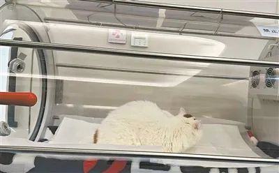尽管购入该设备的宠物医院不多,但近两年随着宠物医疗,尤其是“中兽医”的发展,宠物使用高压氧舱的情况也并不少见。在网络上,也有一些宠物主分享了自家病宠使用高压氧舱的相关治疗案例。宠物主李女士透露,此前她也曾为自家16岁半、患有“马尾综合征”和眼球震颤的猫咪“小小”进行过高压氧舱治疗。“一次治疗全程一个半小时,其中包括加压和泄压过程,打完折收费400元一次。”