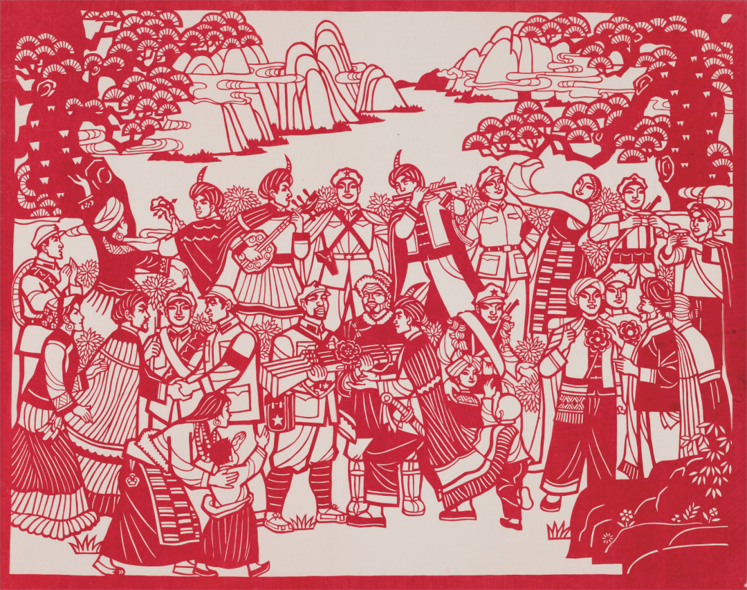 谭伯潮《东方红组画之八·情深谊长》 剪纸 1966年