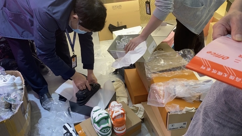 此次执法行动,累计排查经营商户700户次,排查相关商品8000余件。经初步核查,查获侵权假冒的服装、鞋帽、皮具、香水、手表等商品578个(件),涉及“LV”“adidas”“NIKE”“CHANEL”“GUCCI”“劳力士”“浪琴”等知名品牌。