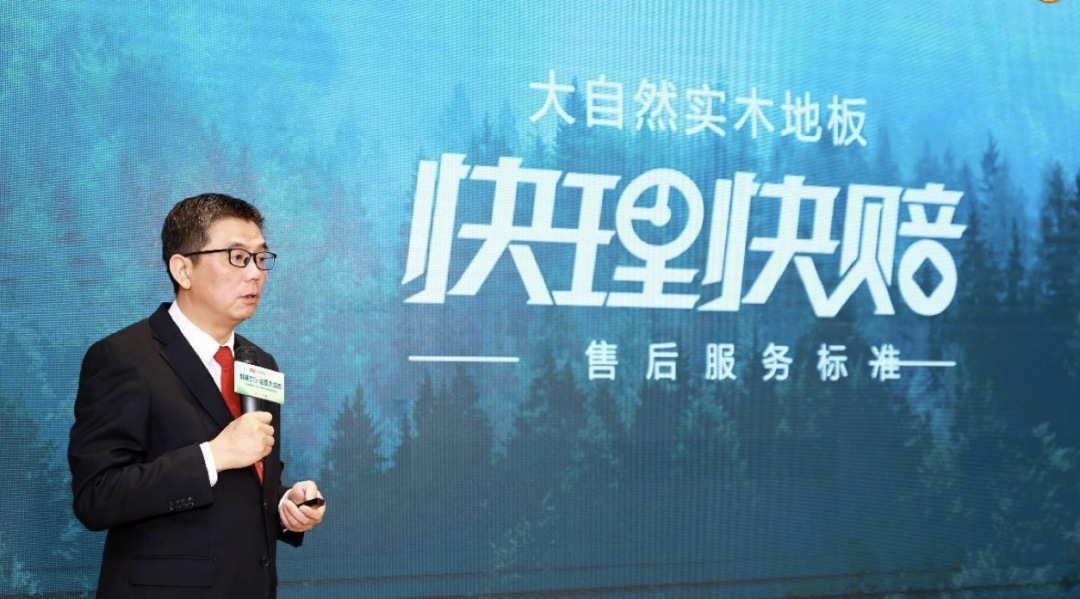 大自然家居集团副总裁林皓发布《大自然实木地板快理快赔服务标准》