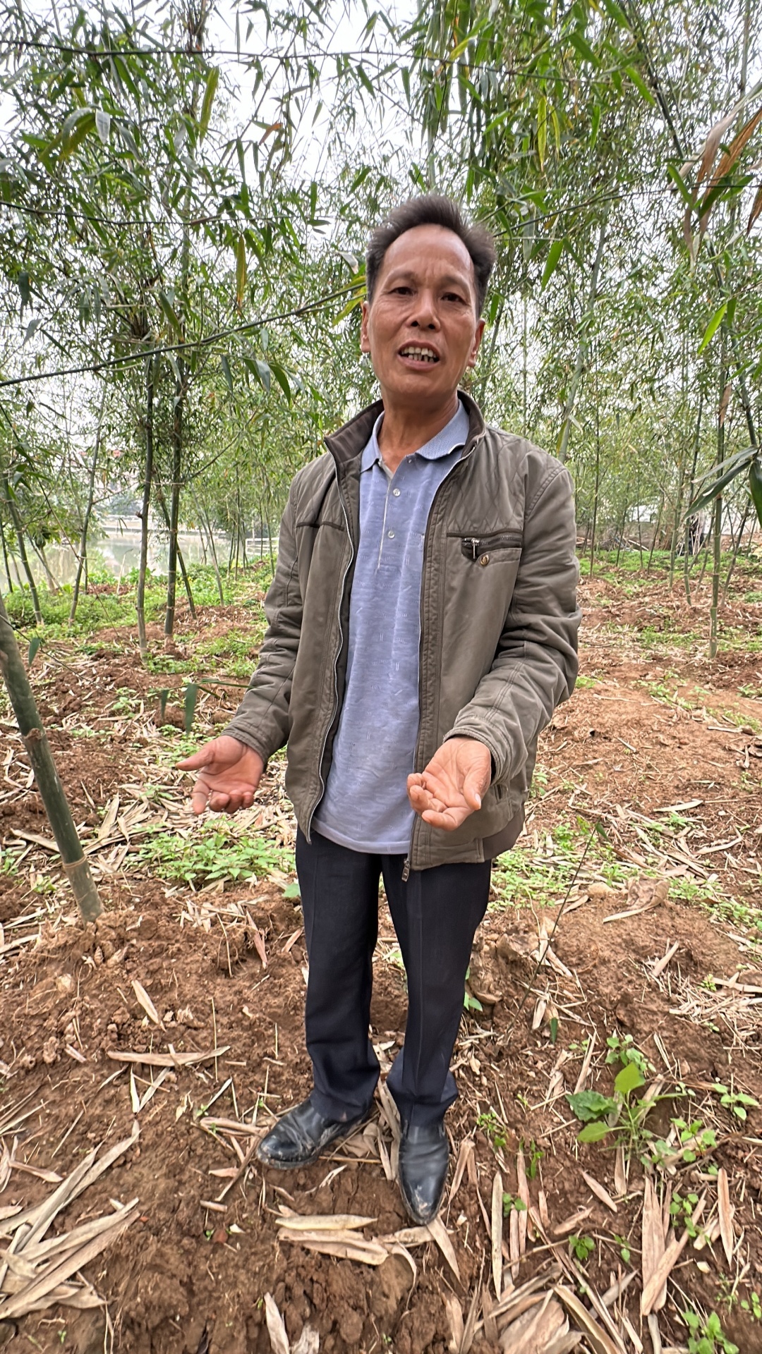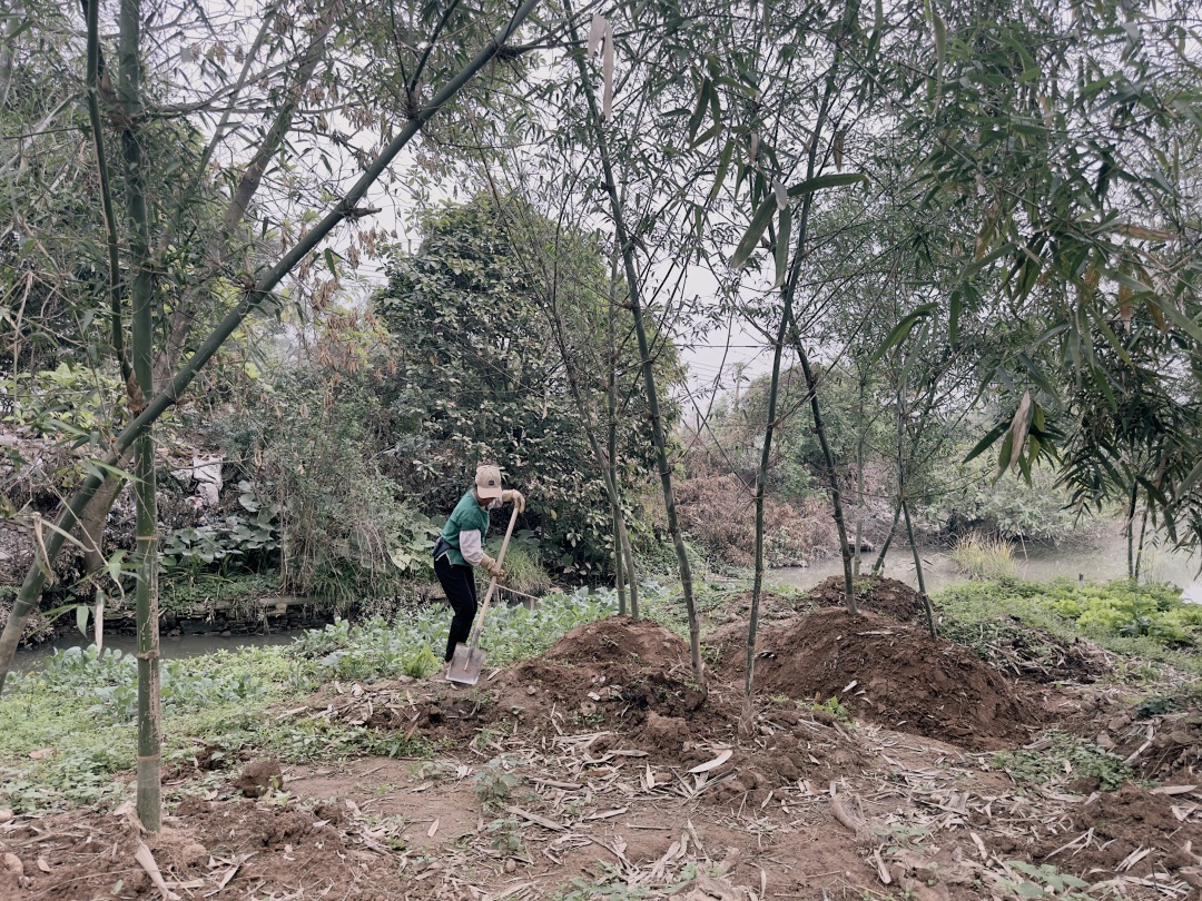 冬瓜窿河边,村民为竹林“盖”土