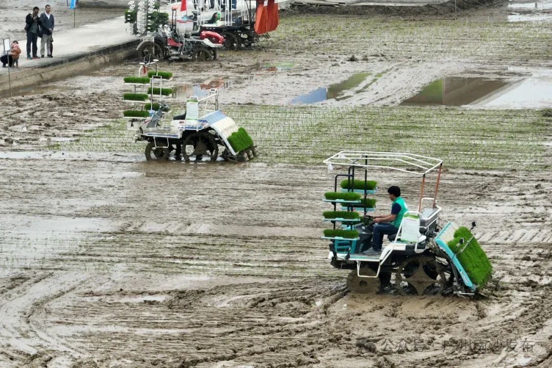 先进的机械化农机装备助力春耕。在此次推广会上,有水稻智能插秧机、水稻智能钵体苗插秧机、水稻穴直播机、侧深施肥插秧机、无人机等众多先进机械化农机装备现场展示。